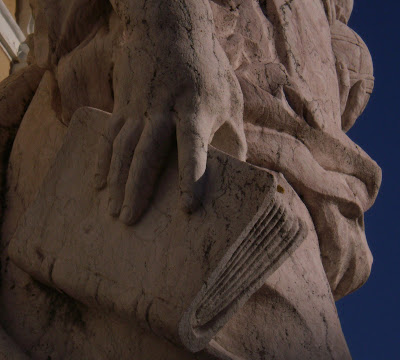 De um lado estava um livro de capa gasta e velha, que de tanto ser lido e folheado, se cansou dos olhos e dos dedos dos leitores. Foi por isso que se resolveu transformar em pedra, em busca da paz de espírito, sem ser lido por devoradores pela noite dentro, ao ponto de começar a ficar descolado e com folhas soltas.