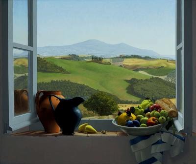 Mesmo assim, senti que aquele não era o meu campo. O único lugar onde descobri o "meu campo", foi da tua janela da cozinha, parecia uma visão, próxima deste excelente óleo de Amy Weiskopf...